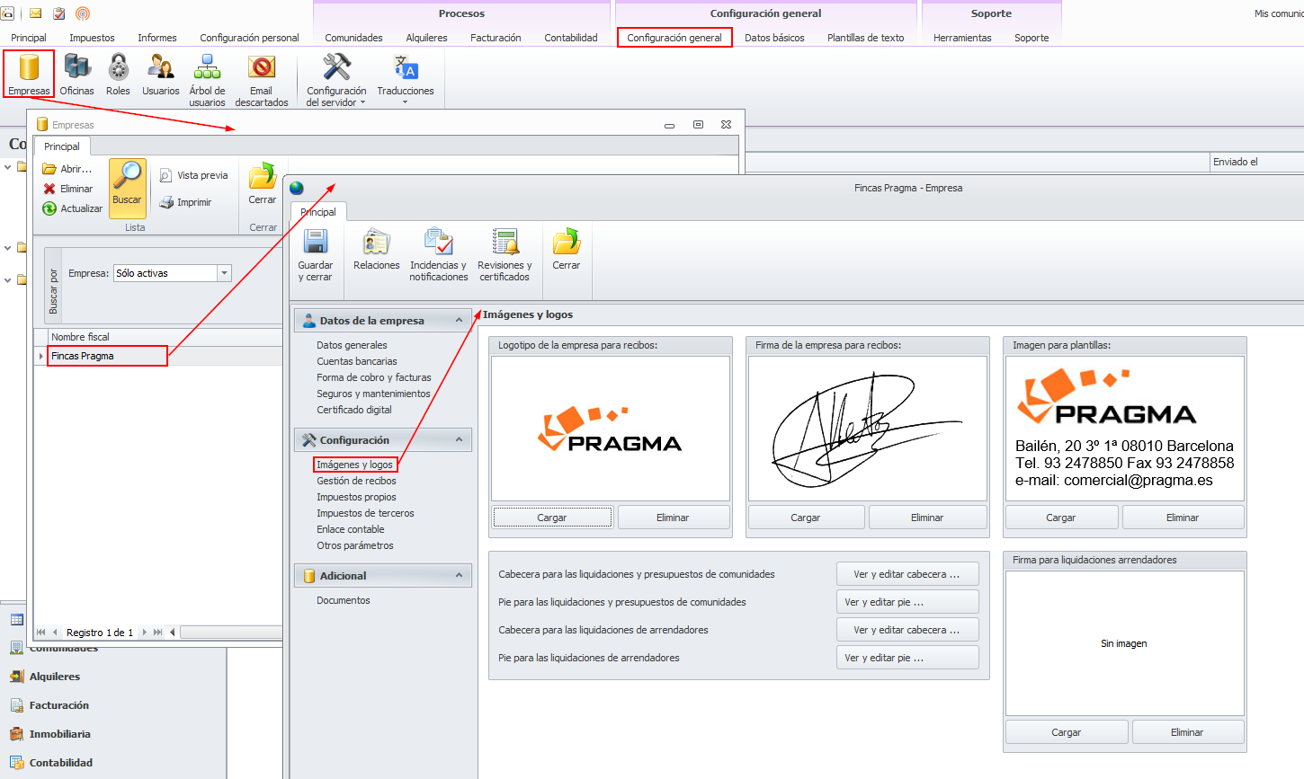 Los logotipos se almacenan en la sección Imágenes y logos de la ficha de Empresa.