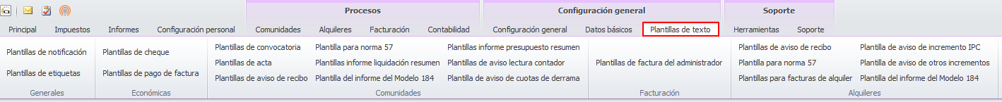 Para modificar estas plantillas, recuerde acceder a ellas a través del menú Plantillas de texto.