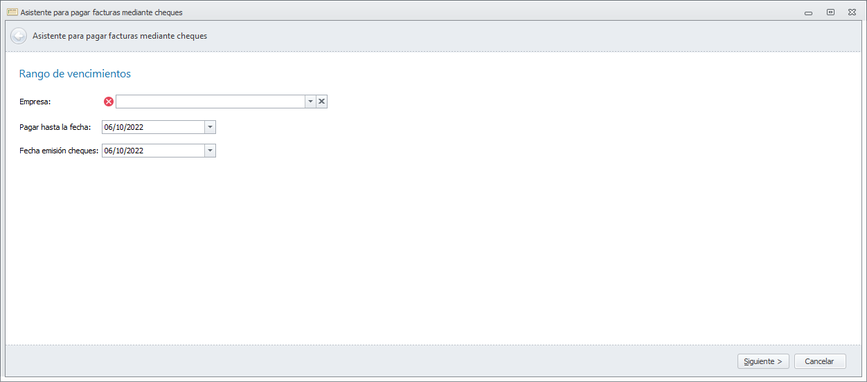 Pagar hasta la fecha. Filtra los vencimientos a pagar, escogiendo únicamente los anteriores o iguales a la fecha indicada.