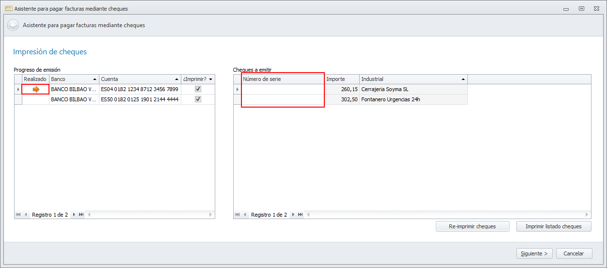 Imprimir listado cheques le facilita un informe con los cheques impresos.