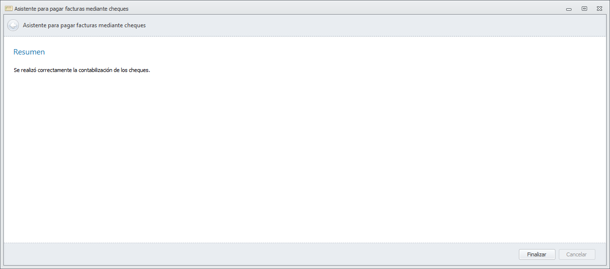 Al finalizar la impresión de todos los cheques, se realizará la contabilización del pago.