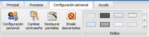 La pestaña Configuración personal se ubica en la cinta de opciones de ADMINET.