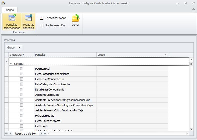 Restaurar la configuración de las pantallas a su estado original.