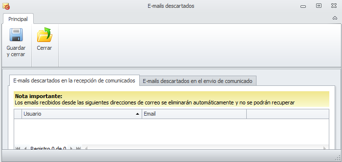 Consultar las cuentas de correo electrónicas descartadas (SPAM).