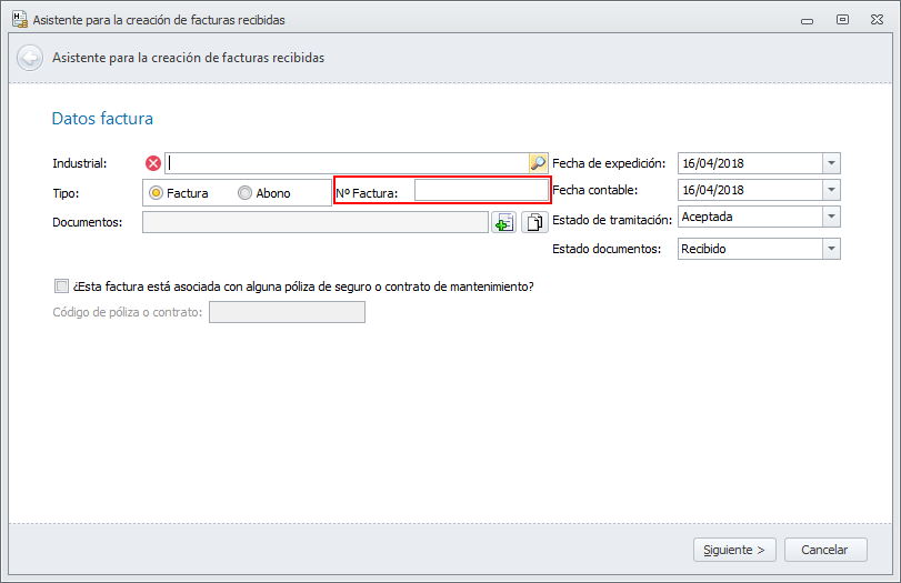 Al dar de alta una factura de industrial o de proveedor uno de los datos que se solicita es el número de factura.
