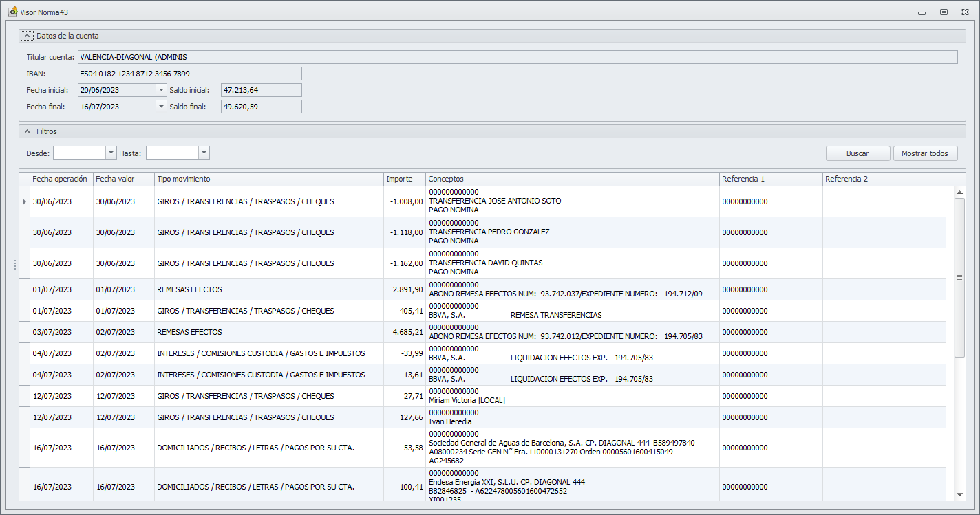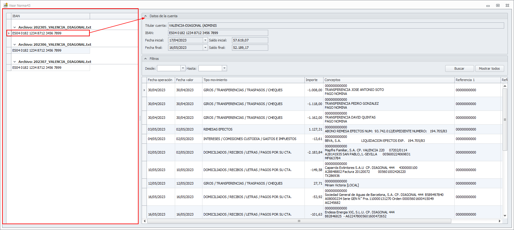 Esta herramienta muestra el contenido del un archivo de extracto bancario en norma 43.