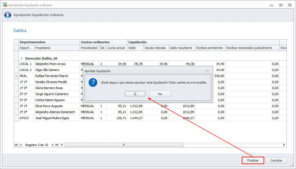 Saldo a regularizar: Es el importe que se cobrará o pagará al copropietario en concepto de saldo de liquidación.