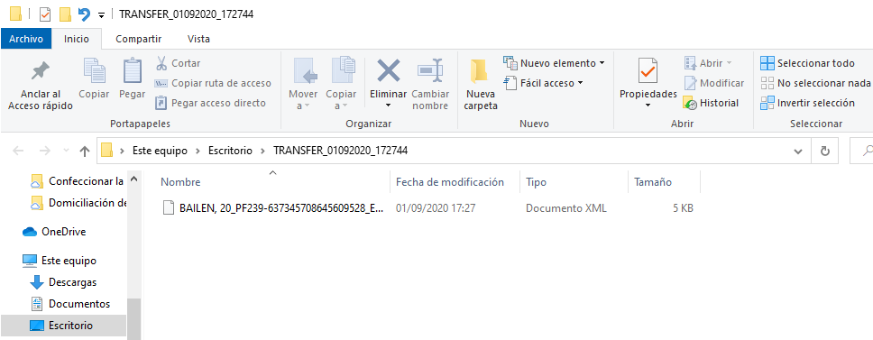 En el caso de que haya saldos que se deban pagar por transferencia, se abrirá automáticamente el explorador de archivos con el archivo para remitir a la entidad bancaria.