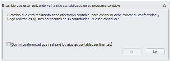 Si el usuario acepta la responsabilidad de cambiar manualmente la contabilización de esta factura, entonces se realiza el cambio.