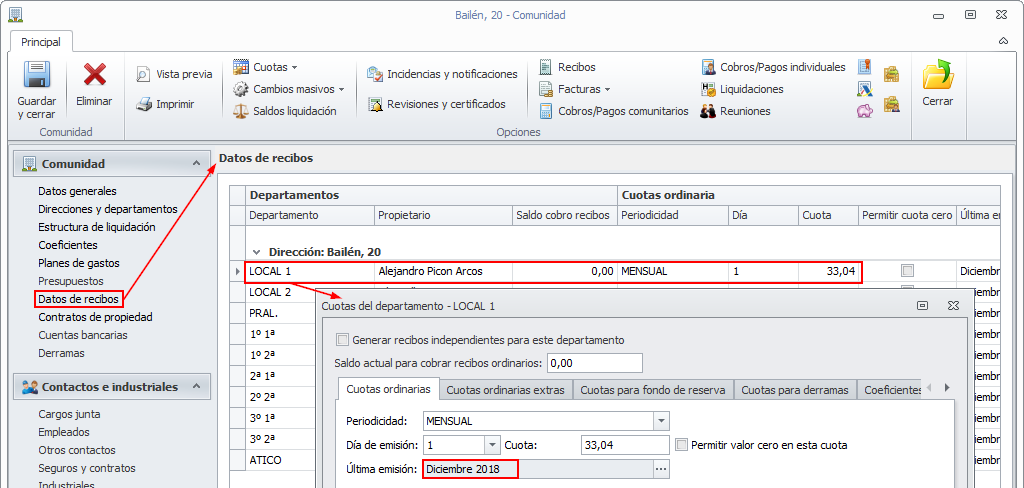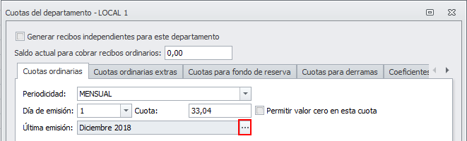 Adminet guarda, de forma automática, la fecha del último recibo emitido de cuota ordinaria y de fondo de reserva por cada departamento.