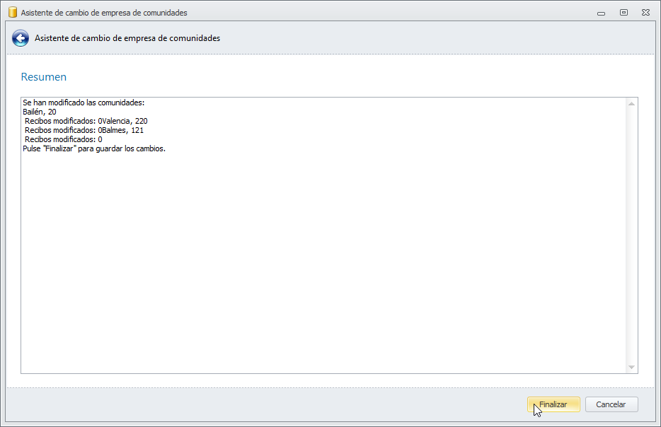 Se cambia la empresa administradora en la ficha de comunidad.