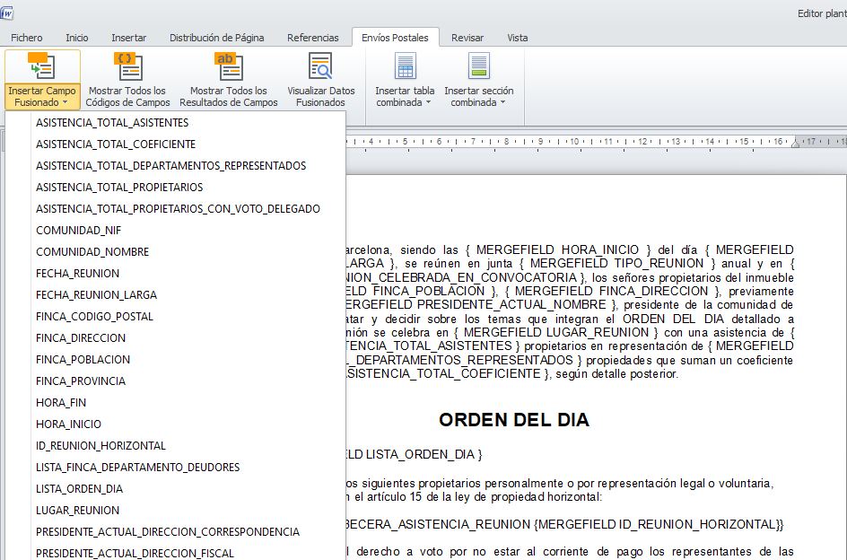 A continuación, se explica el valor que se asigna, al generar el acta, para determinados campos fusionados.