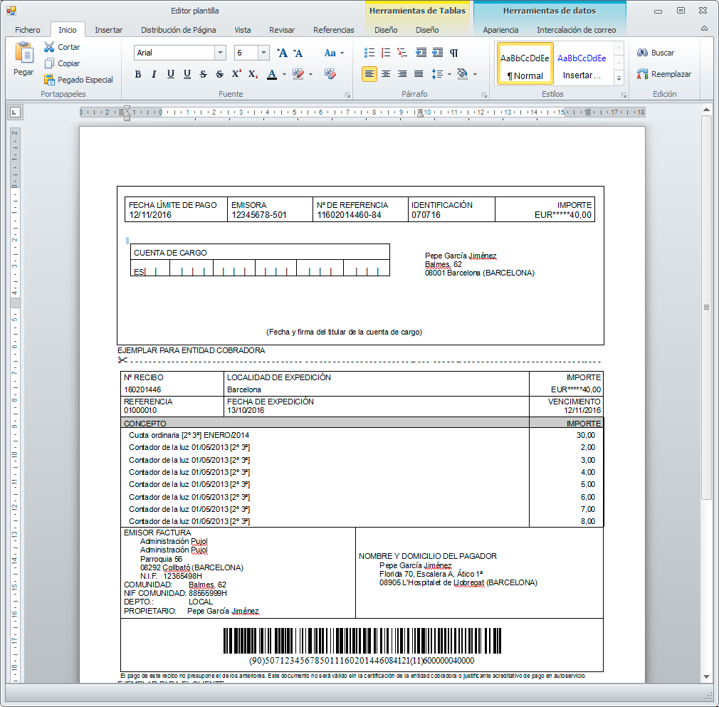 A continuación se explica el funcionamiento de cada una de las opciones del programa implicadas en el funcionamiento de este método de cobro.