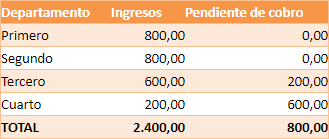 Se añade a la hoja de cálculo el importe de los recibos pendientes de cobro por cada departamento.