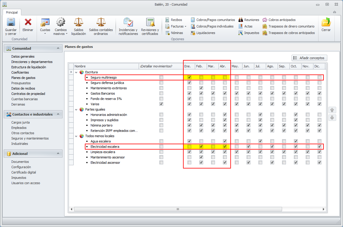 Aprovechando el plan de gastos para indicar en qué meses se reciben cargos por cada uno de los conceptos se puede obtener un informe comparativo totalmente ajustado a la realidad.