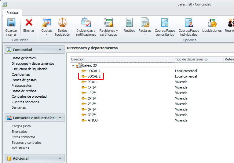 En el resto de casos (comunidad que se gestiona desde cuenta bancaria de la comunidad y que tiene una sola escalera), la descripción del departamento se compone únicamente del Nombre del departamento.