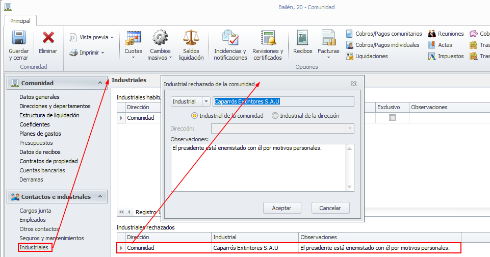 Industrial de la comunidad. Debe activarse esta casilla si este industrial ha sido rechazado para toda la comunidad.