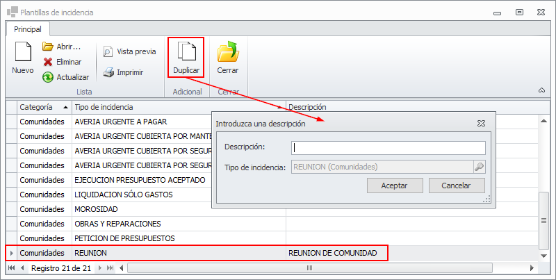 En el siguiente ejemplo, se ha duplicado con el nombre REUNION EXTRAORDINARIA.