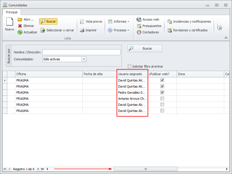 Las comunidades seleccionadas son añadidas a la lista del asistente de emisión de recibos.