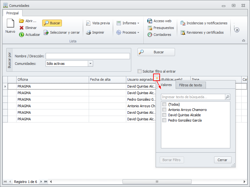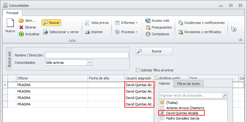 Si desea emitir únicamente los recibos de las comunidades gestionadas por un oficial, proceda del siguiente modo: