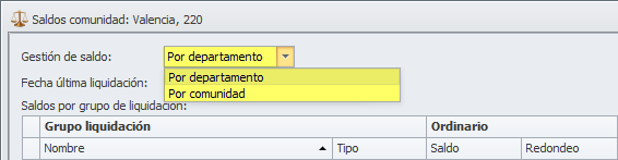 En la parte superior de la ventana se solicita si el saldo se gestiona por comunidad o por departamento.