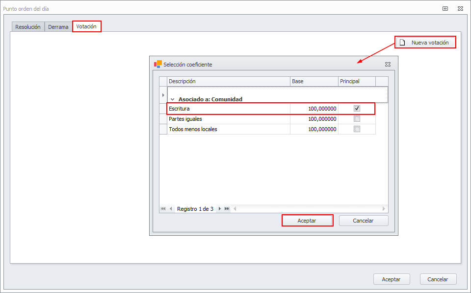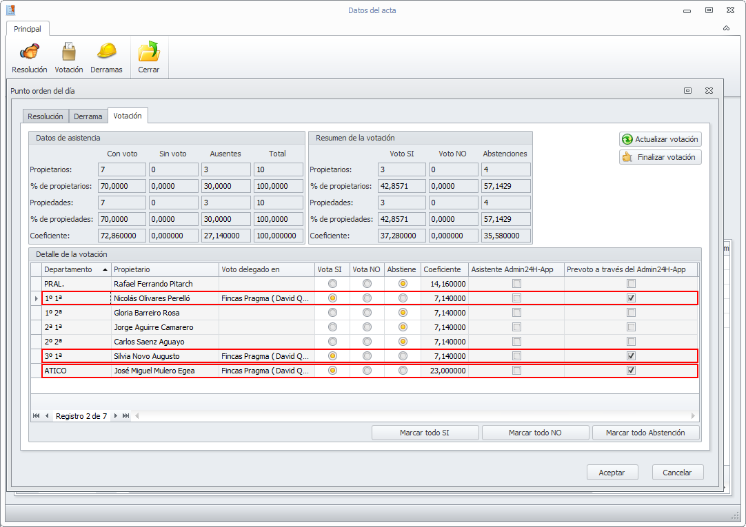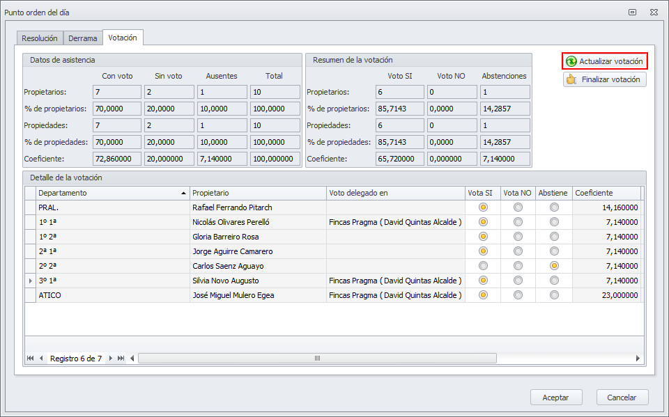 Con el botón Actualizar votación, se actualizan los votos emitidos por los propietarios.