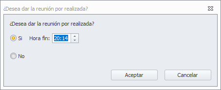 Cuando el administrador da por cerrada la reunión, se pide confirmación al usuario.