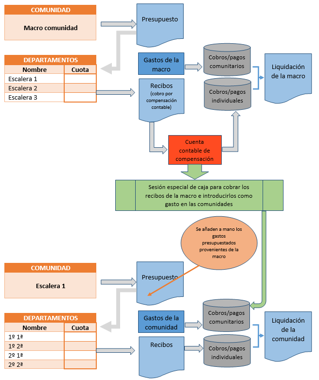 En este documento se expone cómo gestionar una macro-comunidad como si se tratara de una comunidad cualquiera, compuesta por departamentos. Cada comunidad que participa de la macro será un departamento.