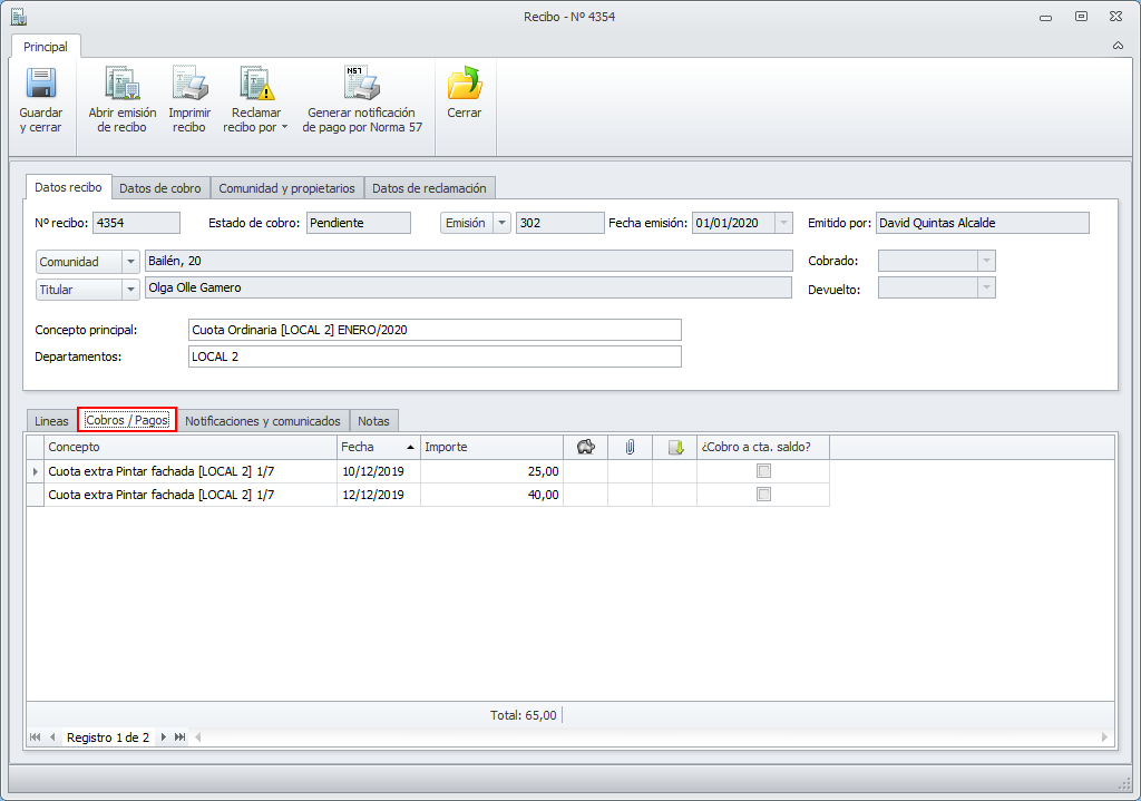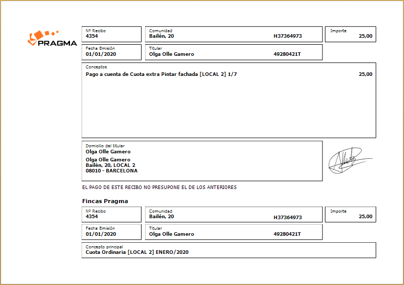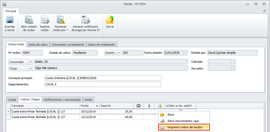 Impresión de cobros de recibos de comunidad