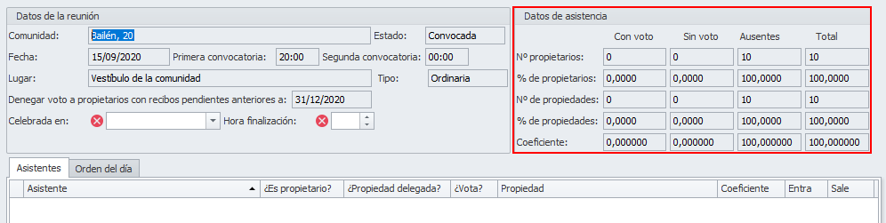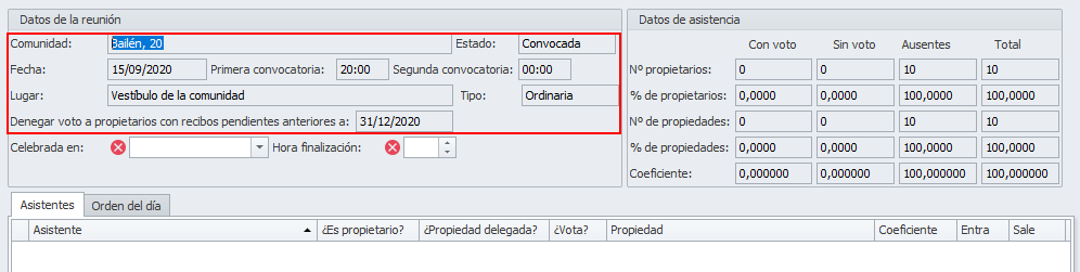 En la siguiente imagen puede ver como los propietarios que no tienen derecho a voto por tener recibos pendientes tienen desactivada la casilla Vota.