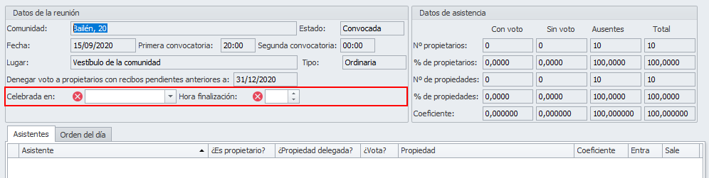 Al iniciar la tarea Introducir datos de la reunión, se muestra la siguiente ventana.