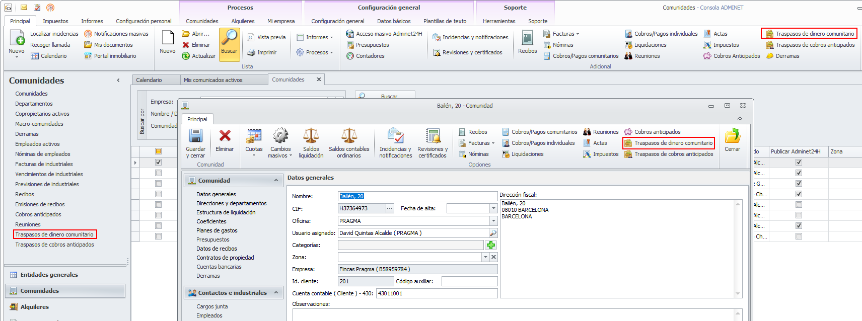 Los traspasos comunitarios son traspasos de dinero efectuados dentro de una misma comunidad entre sus diferentes liquidaciones y cuentas bancarias.