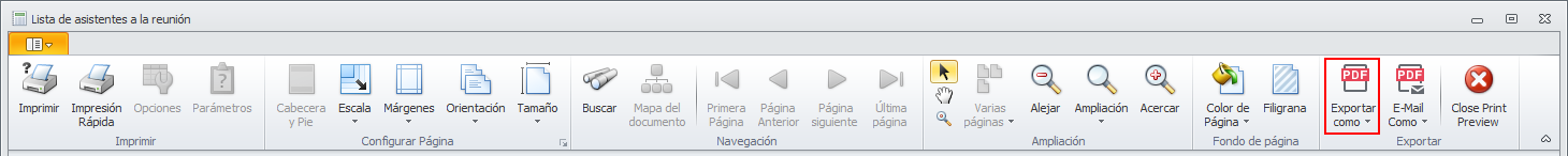 La parte superior de la ventana de informes permite, entre otras funciones, exportar el informe a diferentes formatos.