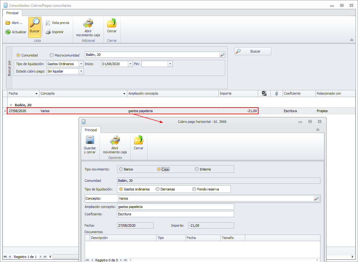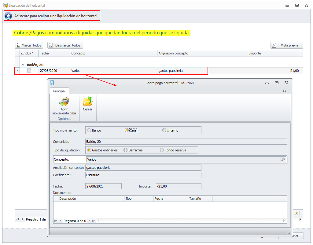 Si necesita realizar la modificación de algún movimiento, debe cerrar ese asistente y acceder al movimiento desde la ficha de la comunidad.