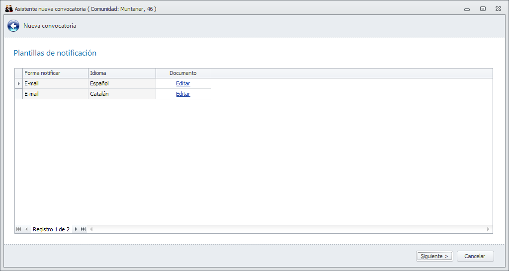 Si ha incluido una plantilla de notificación en el envío, le permite editarla para personalizar éste envío. Los cambios que realice serán sólo para este envío y no afectarán a la plantilla original.