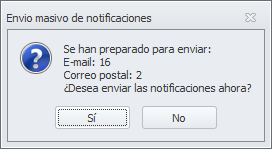Si responde que Sí, se inicia el proceso de envío. Cuando finaliza muestra esta ventana.