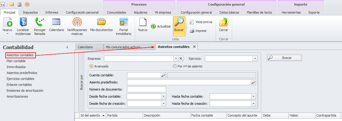 Escoja la empresa y ejercicio que desee. Haga clic aquí para más información sobre la selección de empresa y ejercicio.