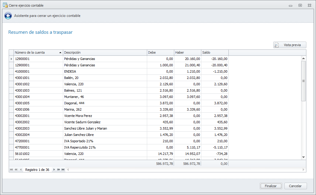 Por último, se muestra una relación con las cuentas y saldos que se van a traspasar.
