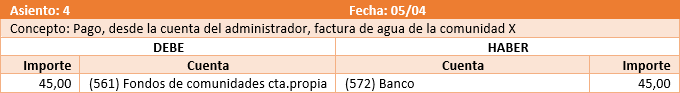 Para transferir a la comunidad los ingresos comunitarios y los recibos cobrados realiza un asiento como este.