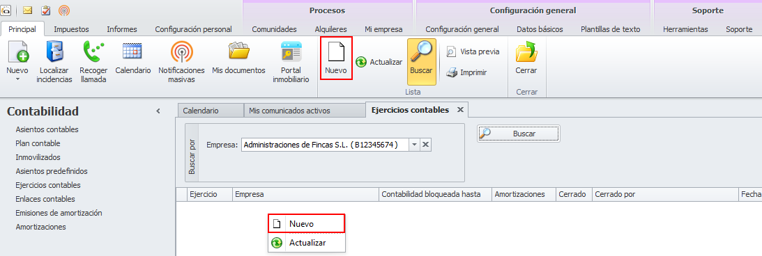 Nuevo ejercicio contable