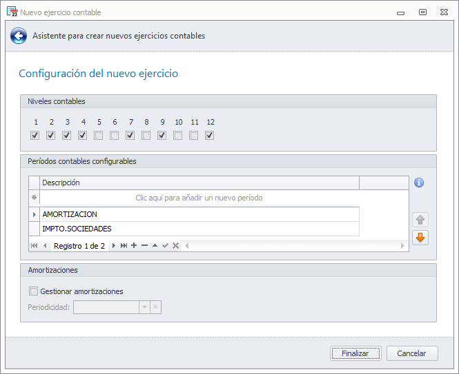 Gestionar amortizaciones. Indique si va a gestionar amortizaciones desde la contabilidad de esta empresa.