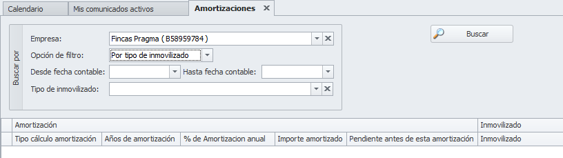 Tipo de inmovilizado. Mostrará sólo las amortizaciones cuyo inmovilizado corresponda al tipo de inmovilizado indicado en pantalla.