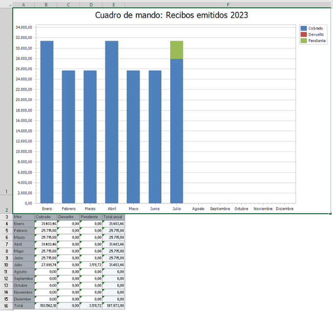 Una vez se accede al documento excel, se tienen disponible tanto la gráfica como los valores que la originan.