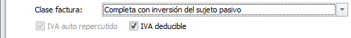 IVA auto repercutido: La casilla está activada y no se permite modificar, puesto que la condición de esta clase de factura es que el receptor se debe auto repercutir el IVA.