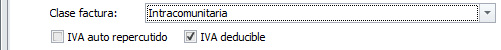 Esta clase corresponde a las facturas cuyo proveedor no es del propio país sino de otro de la Unión Europea. Esta factura no incluirá IVA.