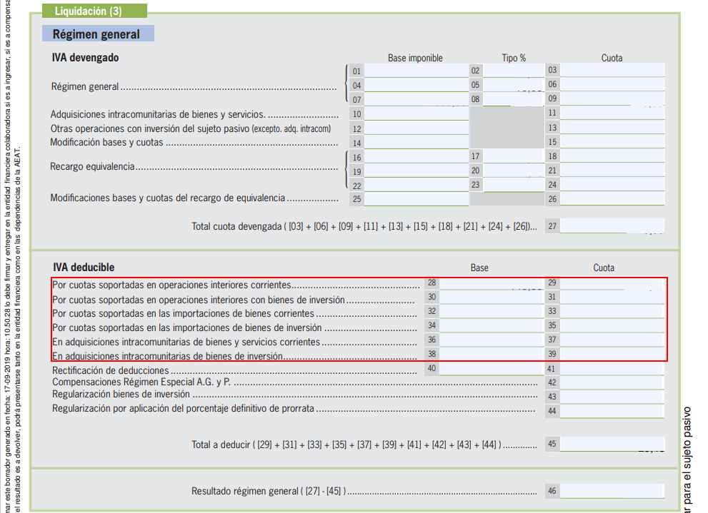 El IVA de las facturas de proveedores se refleja en el apartado IVA deducible del modelo 303. Se acumulará en unas casillas u otras, dependiendo de cómo esté informada la factura.