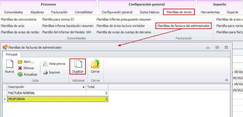 Duplique la plantilla de factura que utilice habitualmente y dele el nombre PROFORMA.