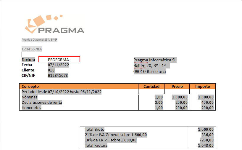 Emitir una factura proforma