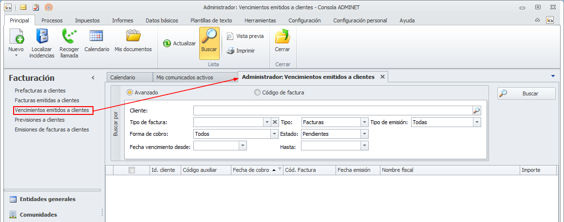 Haga clic aquí para acceder a la ayuda del apartado de Vencimientos emitidos a clientes.