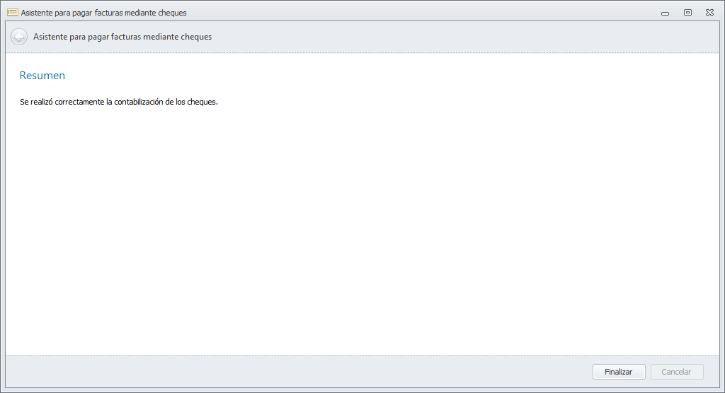 Al finalizar la impresión de todos los cheques, se realizará la contabilización del pago.